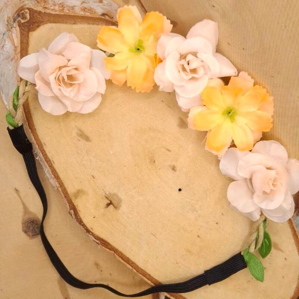 Voeg een vleugje romantiek toe aan je outfit met deze bloemenkransjes. De speelse bloemetjes op een gevlochten band geeft een dromerige boho-look.