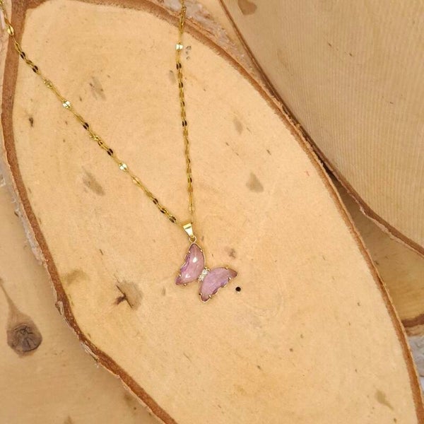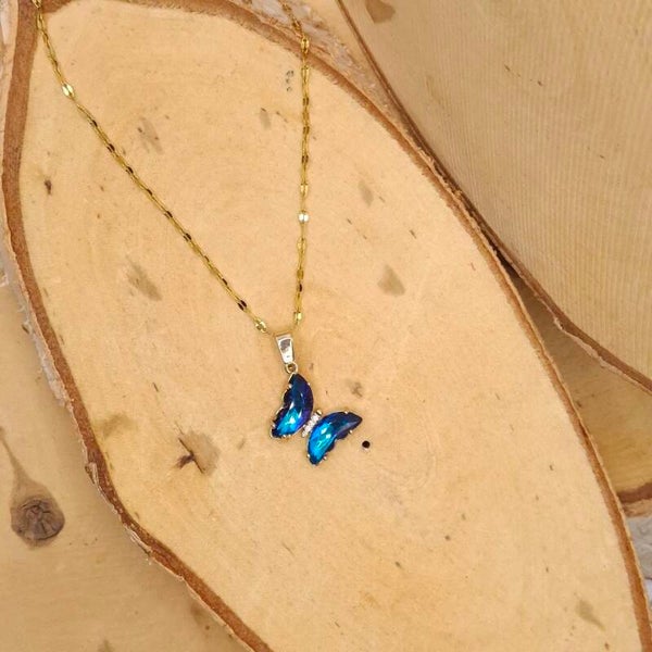 Deze betoverende vlinderketting is een echte eyecatcher! De hanger, gevormd als een vlinder in twee fonkelende vleugels, is verkrijgbaar in verschillende sprankelende kleuren. De ketting heeft een verfijnde, glanzende schakel die het geheel een elegante en dromerige uitstraling geeft.